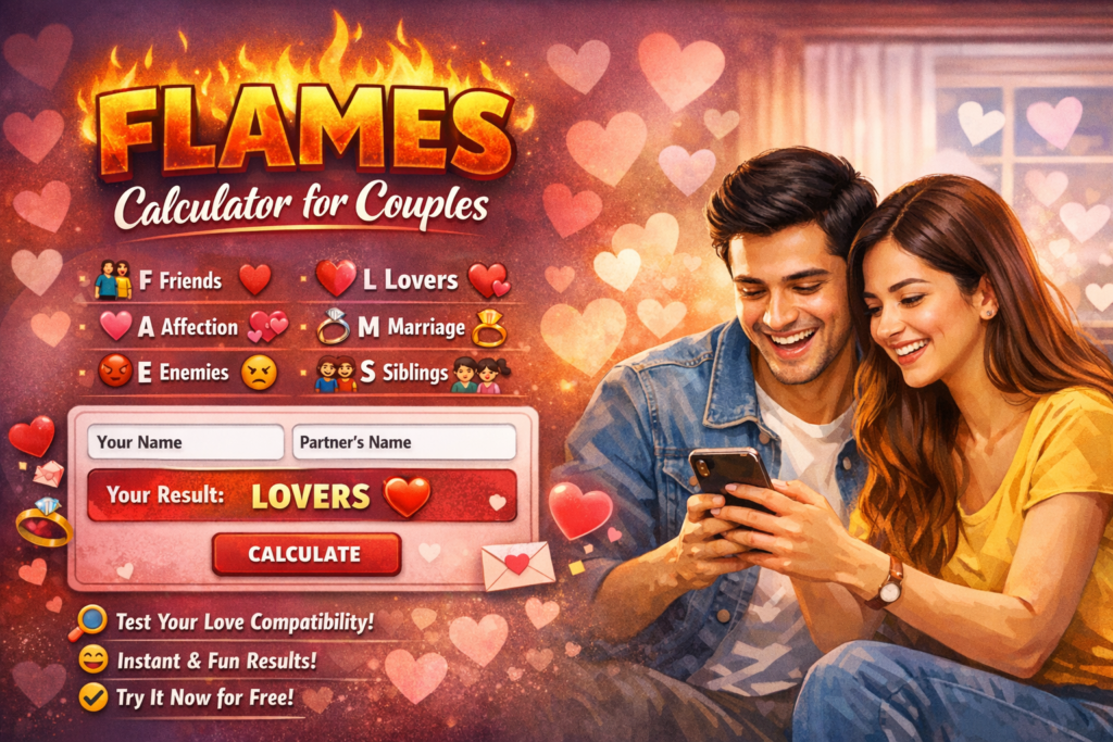 There’s something strangely exciting about typing your name and your partner’s name into a FLAMES calculator and waiting for the result. It takes just a few seconds, but the curiosity it creates can last much longer.